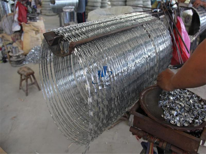 螺旋式刀片刺繩隔離柵是呈環(huán)形狀的刺繩產(chǎn)品,兩兩相扣的環(huán)形交錯(cuò)連接在一起,使兩環(huán)之間的縫隙變小,即使有人想要破壞它,也感,覺(jué)是無(wú)從下手,在安裝時(shí)還很方便,直接拉開(kāi)兩端,再在環(huán)中間拉一條鋼絲固定住即可,環(huán)繞形的螺旋刀片刺繩上的刀片圍繞著圓形,刺絲指向各個(gè)方向,可抵擋各個(gè)方向過(guò)來(lái),的物體,想比其它刀片刺繩產(chǎn)品,螺旋式刀片刺籠防護(hù)網(wǎng)屬于防護(hù)安全效果最好的一種產(chǎn)品了。